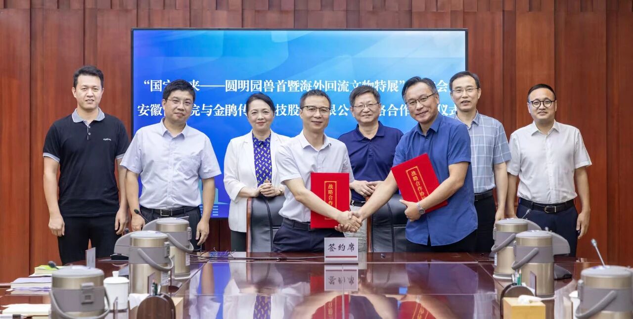 近日,“國(guó)寶歸來(lái)——圓明園獸首暨海外回流文物特展”總結(jié)會(huì)暨金鵑傳媒科技股份有限公司與安徽博物院戰(zhàn)略合作簽約儀式在安徽博物院舉行。安徽廣電傳媒產(chǎn)業(yè)集團(tuán)黨委書記、董事長(zhǎng)周玉,集團(tuán)黨委委員、副總經(jīng)理胡濱,安徽省文化和旅游廳黨組成員、副廳長(zhǎng)兼省文物局局長(zhǎng)胡敏,安徽博物院黨委書記、院長(zhǎng)雷修佛等出席簽約儀式。