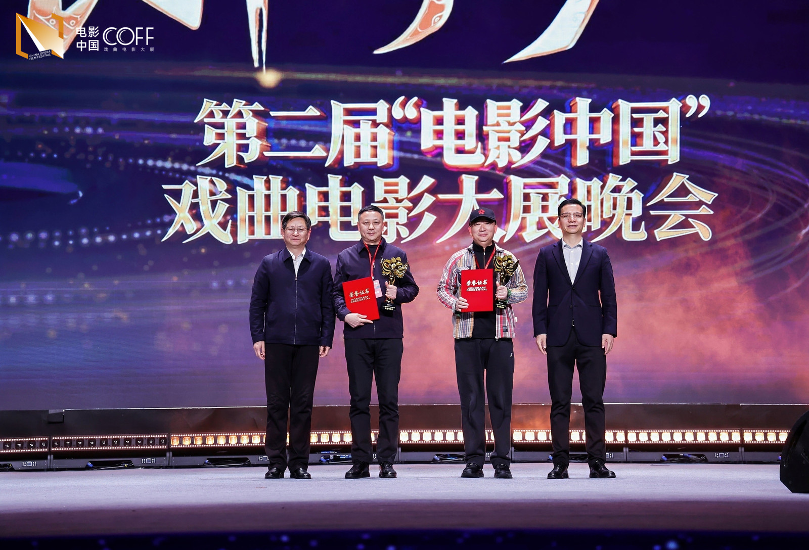 晚會現(xiàn)場名家薈萃,多項(xiàng)榮譽(yù)揭曉。京劇電影《滿江紅》、錫劇電影《大風(fēng)歌》、豫劇電影《重渡溝》榮獲“年度戲曲片”;表演藝術(shù)家于魁智憑借在《滿江紅》中成功塑造岳飛形象獲“中國戲曲電影突出貢獻(xiàn)特別榮譽(yù)”;《雙蝶扇》《東吳郡主》等6部作品獲“評委會特別榮譽(yù)”;《百年程派》《奔向幸?!返?部影片獲“年度戲曲片提名”;《上岸》《南西廂》等10部作品獲“年度戲曲短片”獎;另有7部作品獲年度導(dǎo)演、年度編劇、年度男女主角、年度美術(shù)、年度剪輯、年度攝影等單項(xiàng)獎,24部作品獲“優(yōu)秀戲曲影片”獎。