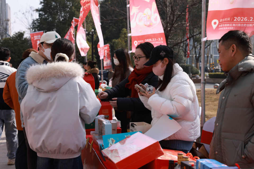 活動以“潮集高新·皋品直達”為主題,聚焦消費幫扶與文化惠民,打造了一場可逛、可品、可感的“家門口”年貨盛宴?,F(xiàn)場氣氛喜慶熱烈,來自六安大別山區(qū)的臘味、茶油、有機大米等農(nóng)產(chǎn)品,與融入非遺元素的年俗文創(chuàng)產(chǎn)品共同構(gòu)成四大主題展區(qū)。不少攤位前排起試吃長隊,現(xiàn)場蒸制的臘味、即泡的六安瓜片和霍山米斛鮮粉即沖香氣四溢,吸引眾多高新區(qū)職工與市民駐足品鑒選購。