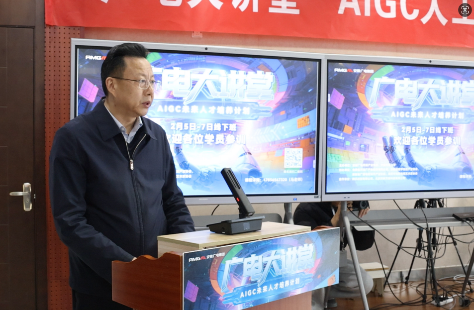 2月5日,由安徽廣電傳媒產(chǎn)業(yè)集團(tuán)主辦的“廣電大講堂”AIGC人工智能技能培訓(xùn)在合肥開(kāi)班。集團(tuán)黨委書(shū)記、董事長(zhǎng)周玉作開(kāi)班動(dòng)員講話(huà)。集團(tuán)黨委副書(shū)記、董事王劉生主持開(kāi)班式。來(lái)自全省影視、數(shù)字媒體、文旅廣告等行業(yè)的業(yè)務(wù)骨干、企業(yè)負(fù)責(zé)人以及集團(tuán)相關(guān)板塊員工共40余名學(xué)員參加培訓(xùn)。