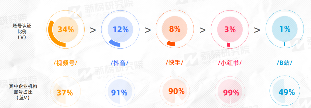 從創(chuàng)作者認(rèn)證占比來看,視頻號文旅賬號認(rèn)證比例最高,達(dá)到34%,抖音、快手跟隨其后;認(rèn)證賬號中,小紅書企業(yè)及機(jī)構(gòu)認(rèn)證占比最高,其次是抖音和快手。