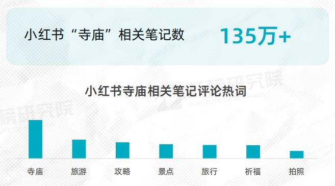 “年輕人熱衷寺廟旅游”“年輕人在上班和上進(jìn)之間選擇了上香”在今年引發(fā)熱議,小紅書“寺廟”相關(guān)筆記數(shù)超135萬篇,寺廟成為了年輕人逃避現(xiàn)代都市壓力和競爭、尋找自我認(rèn)同和歸屬感的重要場所。