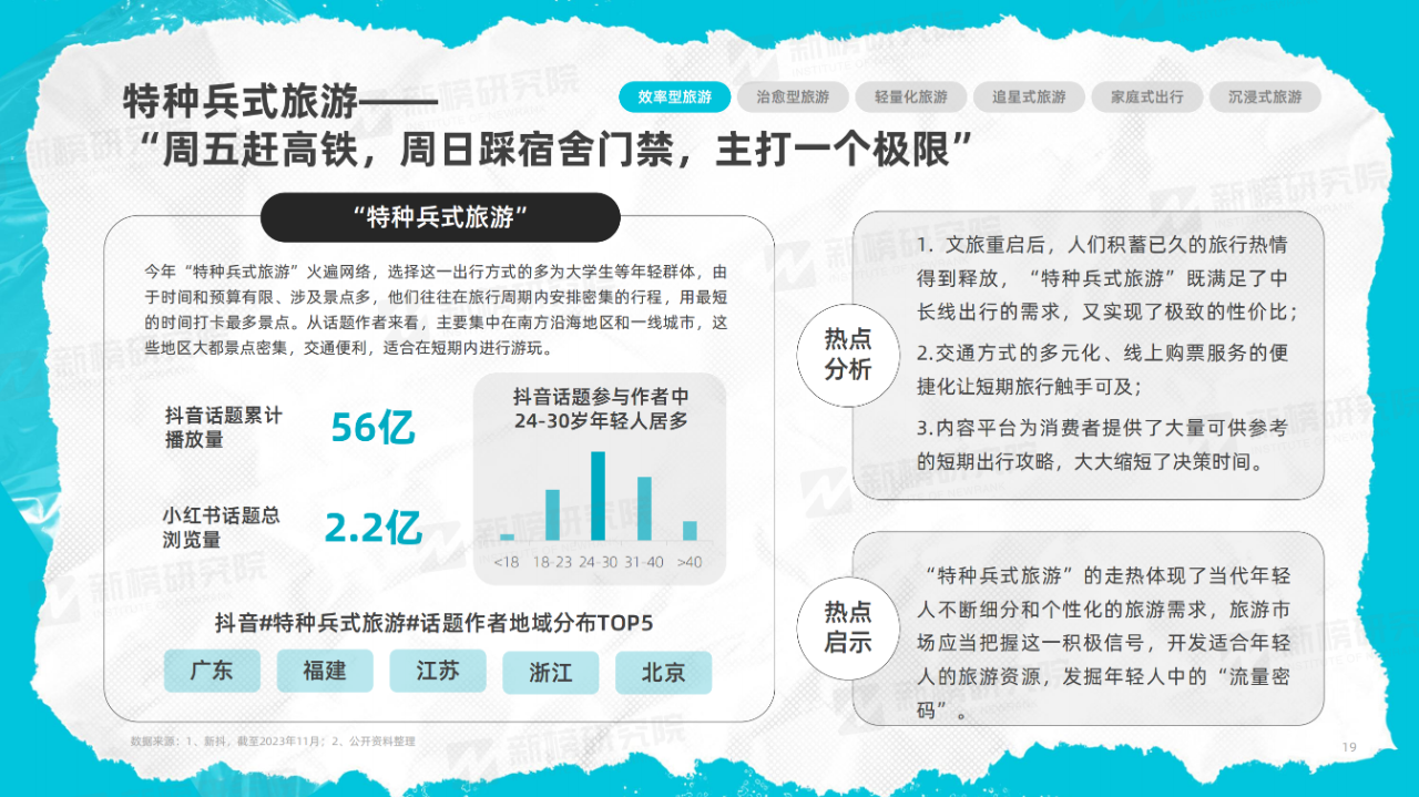 今年“特種兵式旅游”火遍網(wǎng)絡(luò),截至11月,抖音話題累計播放量達(dá)56億,小紅書話題總瀏覽量達(dá)2.2億,選擇這一出行方式的多為大學(xué)生等年輕群體,由于時間和預(yù)算有限、涉及景點多,他們往往在旅行周期內(nèi)安排密集的行程,用最短的時間打卡最多景點。
