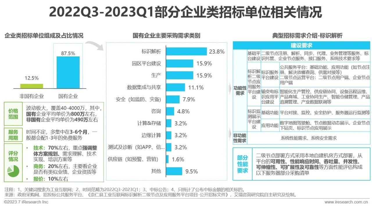 從國有企業(yè)采購的主要類別看,標(biāo)識解析、園區(qū)平臺建設(shè)、生產(chǎn)等是TOP3的需求點,與其承當(dāng)?shù)碾p重任務(wù)息息相關(guān)。