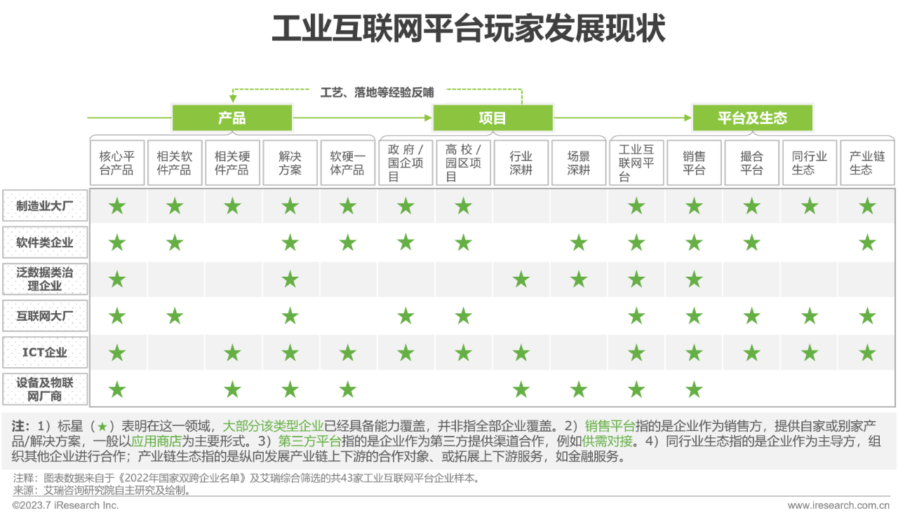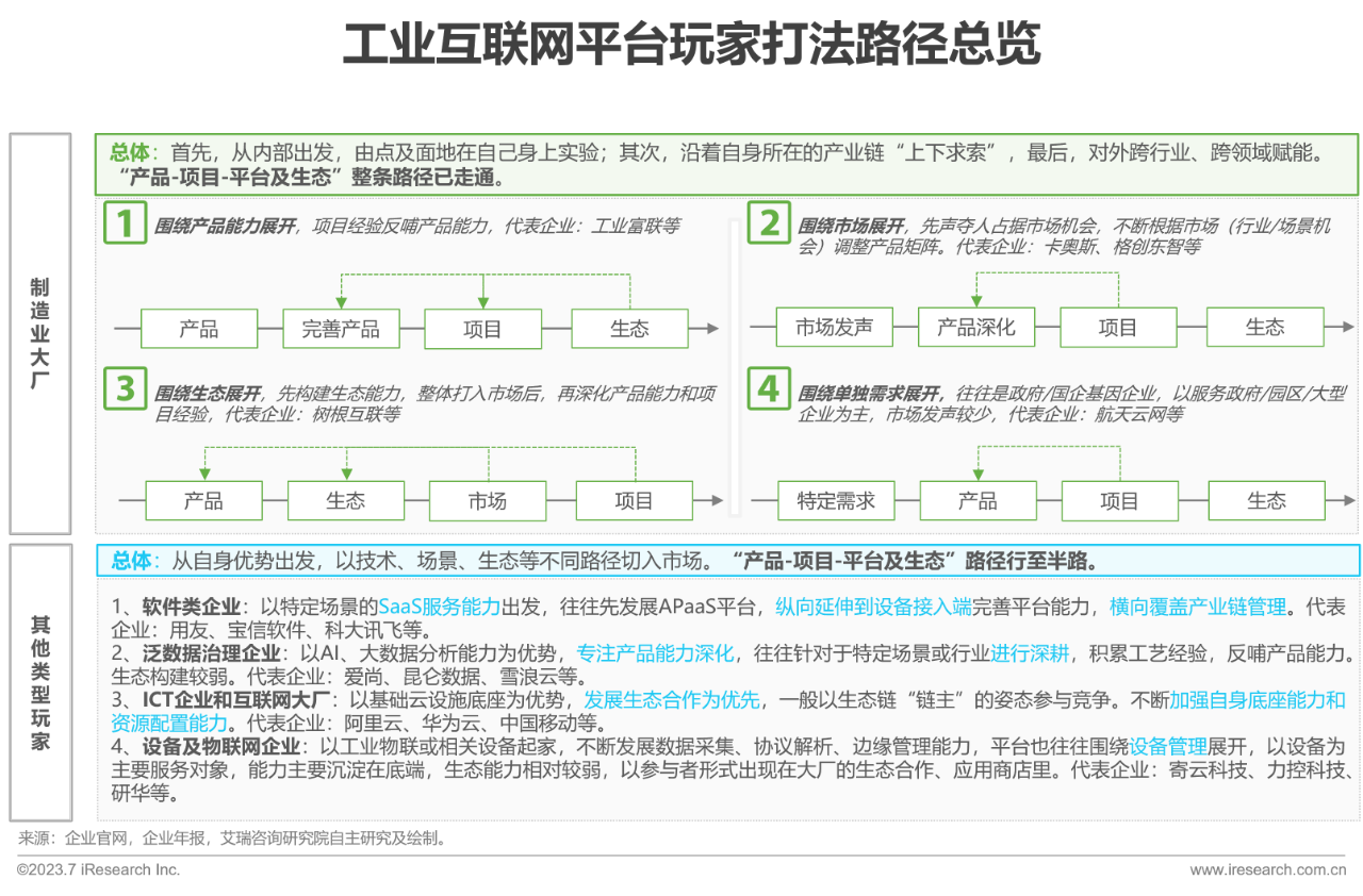 平臺玩家總體打法路徑呈現(xiàn)為“產(chǎn)品-項目-平臺及生態(tài)”,制造大廠已經(jīng)走通,其他類型玩家現(xiàn)行至半路