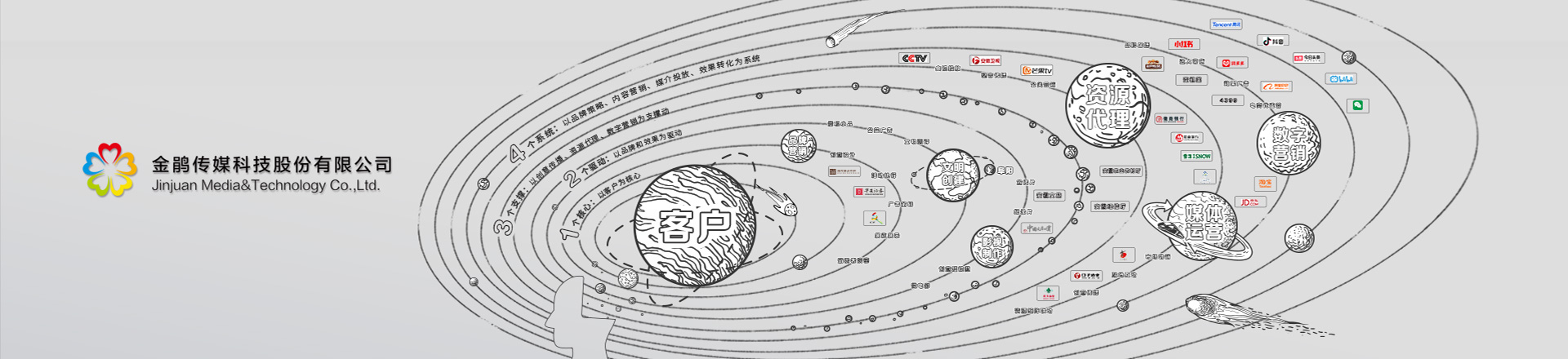 2.全媒介廣告代理(覆蓋央視、地方臺(tái)的電視廣告資源及各類(lèi)互聯(lián)網(wǎng)新媒體廣告代理等);