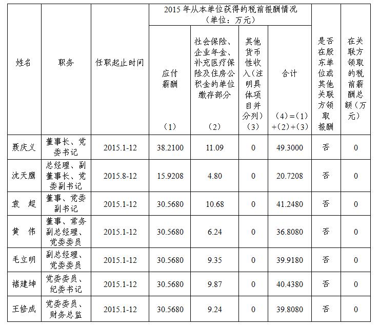 備注:上表披露薪酬為我公司領(lǐng)導(dǎo)班子2015年度全部應(yīng)發(fā)稅前薪酬。其中第1項由省委宣傳部核定。無在關(guān)聯(lián)單位領(lǐng)取薪酬情況;無其他需要說明事項。