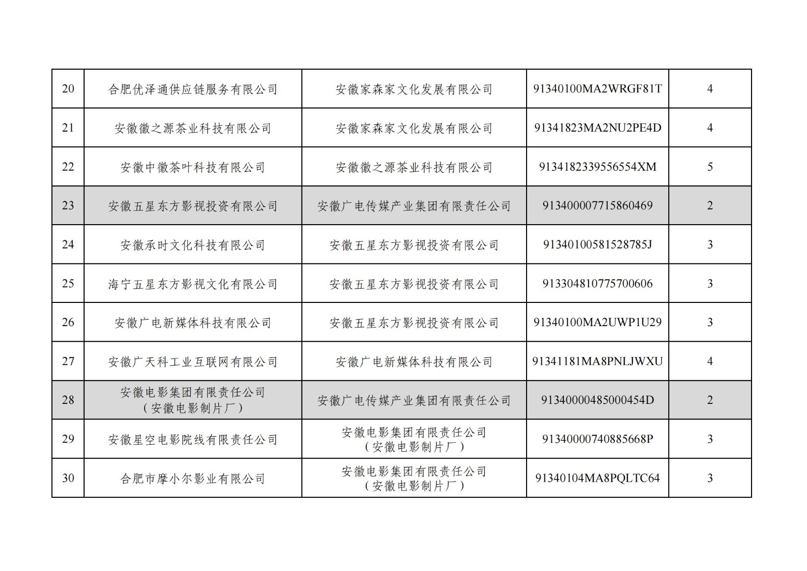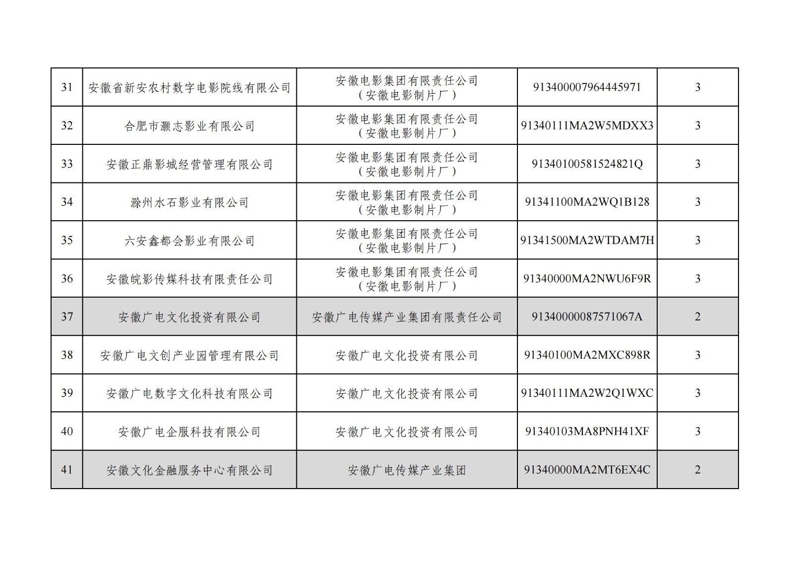安徽廣電傳媒產(chǎn)業(yè)集團(tuán)有限責(zé)任公司全級(jí)次企業(yè)名單