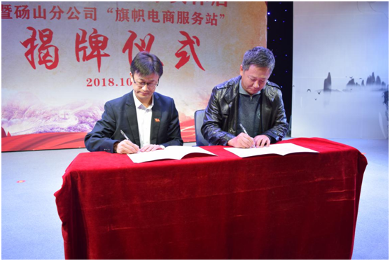 (旗幟電商服務(wù)站主要負責人和碭山縣李莊鎮(zhèn)壹體水果種植合作社簽約)