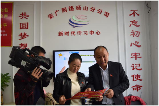 (以黨建促進企業(yè)宣傳,黨員向用戶講解十九大會議精神,碭山縣廣電臺現(xiàn)場采訪)