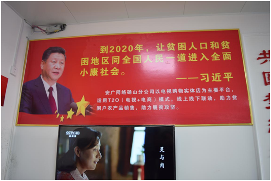 2014年底,國務(wù)院扶貧辦首次明確提出,把“電商扶貧工程”列為2015年精準扶貧十大工程之一,要求“在貧困村開展電子商務(wù)扶貧試點,發(fā)揮市場化電子商務(wù)渠道的作用,促進貧困地區(qū)農(nóng)產(chǎn)品銷售和農(nóng)民增收?!?015年11月29日出臺的《中共中央國務(wù)院關(guān)于打贏脫貧攻堅戰(zhàn)的決定》明確指出要“實施電商扶貧工程”。碭山縣作為國家級貧困縣,縣委縣政府一直致力于脫貧攻堅工作,并把2018年作為全縣高質(zhì)量脫貧摘帽關(guān)鍵年,碭山分公司黨支部根據(jù)當?shù)貙嶋H情況,以敏銳的政治敏感性和洞察力,以“電視+實體店+講習所”三位一體的模式,建設(shè)“旗幟先鋒服務(wù)站”—家家購物碭山實體店,來助力基層黨建工作,通過安徽電視臺的廣電品牌影響力,以電視購物實體店為主要平臺,運用T2O(TV To Online 電視+電商)這種模式立足我們的電視傳播專業(yè)性優(yōu)勢,在碭山分公司傳習中心,向顧客播放習近平新時代中國特色社會主義思想等內(nèi)容。