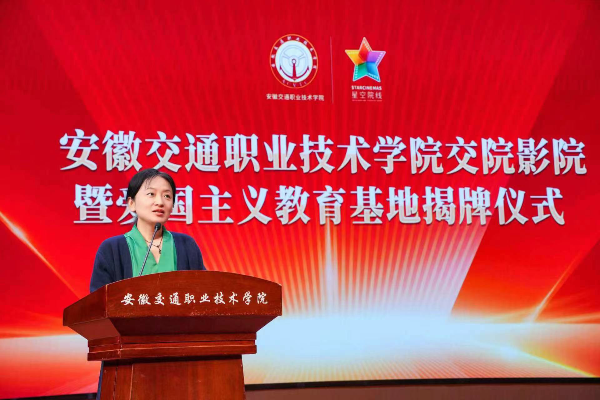 10月25日下午,安徽交通職業(yè)技術(shù)學(xué)院“交院影院”暨愛(ài)國(guó)主義教育基地掛牌儀式在安徽交通職業(yè)技術(shù)學(xué)院新橋校區(qū)成功舉辦。安徽廣電集團(tuán)黨委書(shū)記、董事長(zhǎng)周玉出席儀式并和安徽交通職業(yè)技術(shù)學(xué)院院長(zhǎng)孫曉雷為“交院影院”暨愛(ài)國(guó)主義教育基地揭牌。孫曉雷和安徽廣電集團(tuán)黨委委員、工會(huì)主席,安徽電影集團(tuán)黨總支書(shū)記、董事長(zhǎng)虞詠先后致辭。