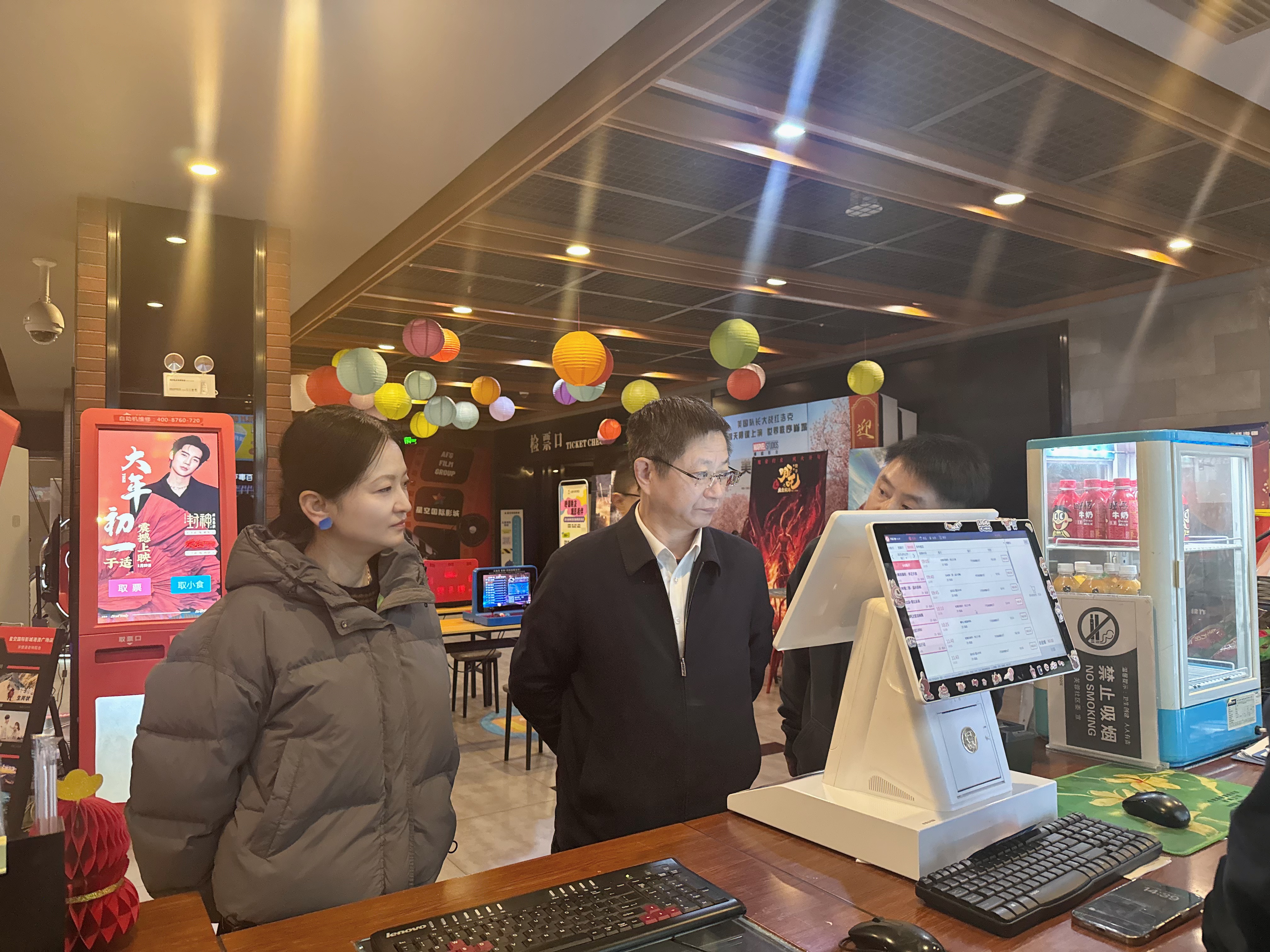 在檢查安全工作的同時(shí),周玉向在春節(jié)期間堅(jiān)守一線的影城員工表示慰問和感謝,鼓勵(lì)大家以高度的責(zé)任感、更加飽滿的熱情和昂揚(yáng)的斗志奮戰(zhàn)春節(jié)檔,為全市人民送上電影大餐、文化盛宴。