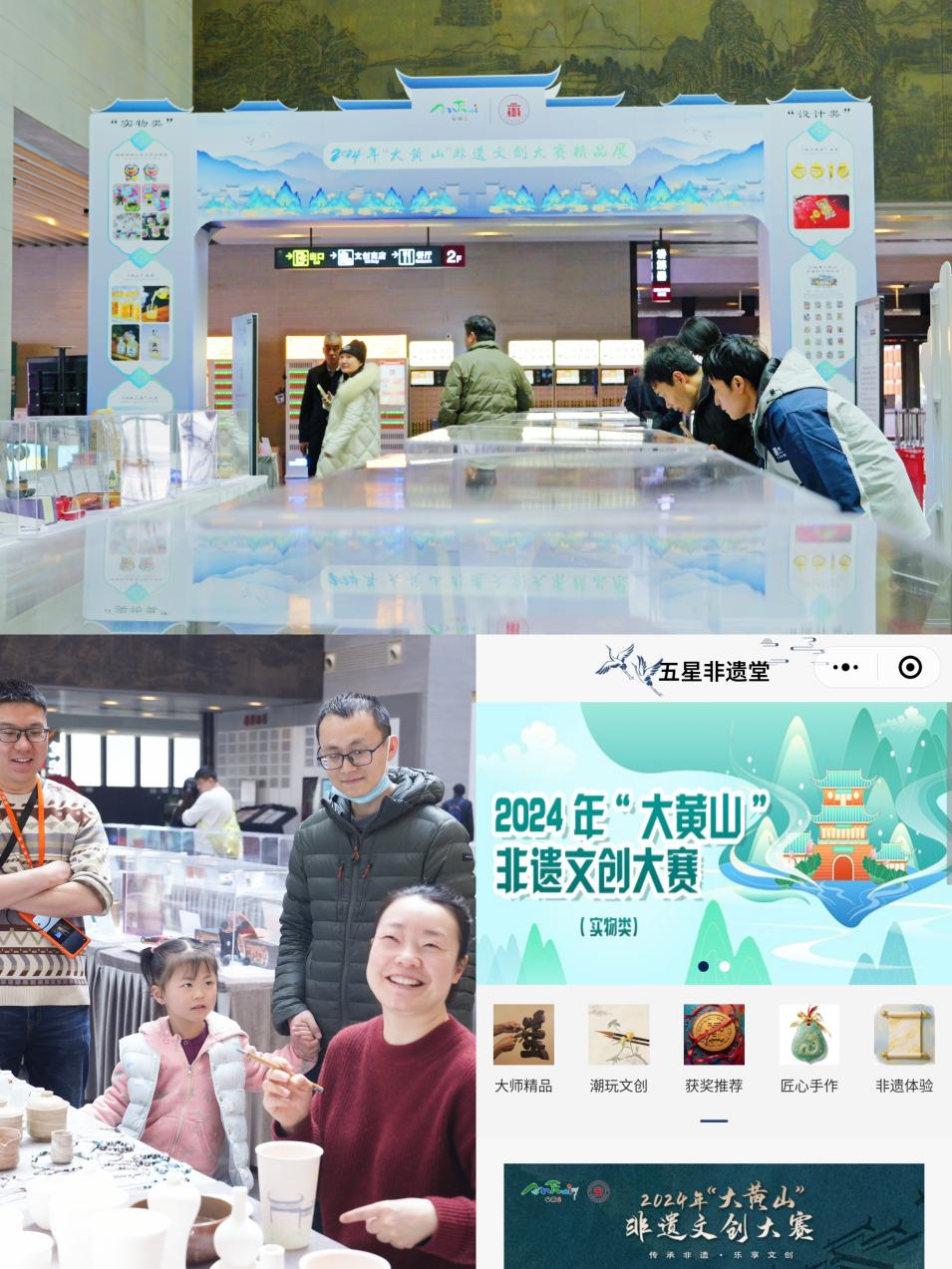 在安徽博物院舉辦為期一個(gè)月的2024年“大黃山”非遺文創(chuàng)大賽精品展,對(duì)73件/套實(shí)物類優(yōu)秀作品進(jìn)行展示展銷,并組織洽洽食品、廬州窯等參賽知名企業(yè)和國家級(jí)非遺傳承人現(xiàn)場(chǎng)開展直播帶貨、親子手工、打卡贏文創(chuàng)等活動(dòng),累計(jì)6萬人次觀展。臺(tái)盟安徽省委、徽商集團(tuán)等單位組織職工和相關(guān)專業(yè)人士集體前來觀展。同時(shí),遴選140件/套優(yōu)秀作品上架“五星非遺堂”線上平臺(tái)進(jìn)行常態(tài)化展示銷售。