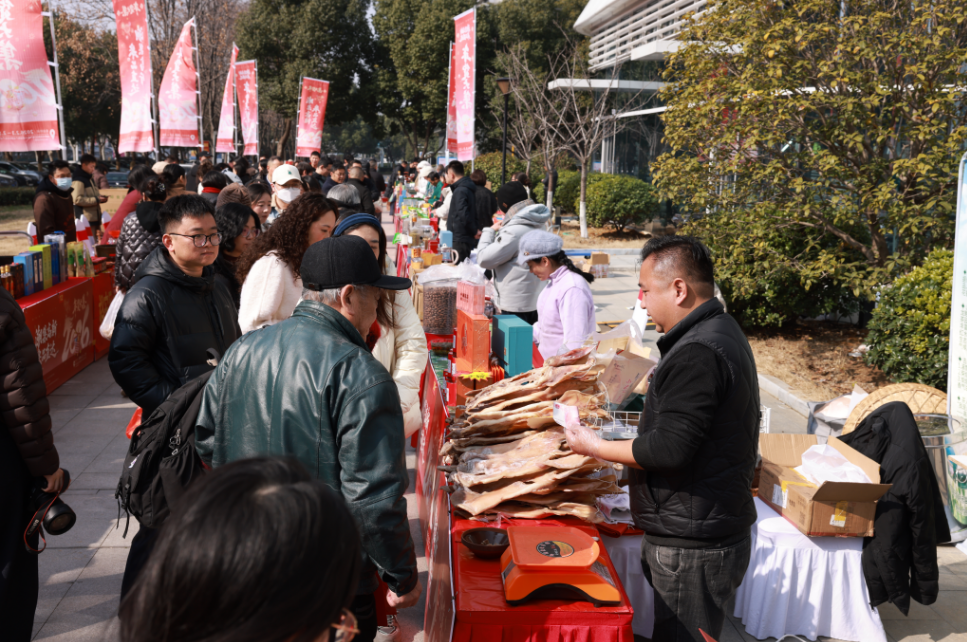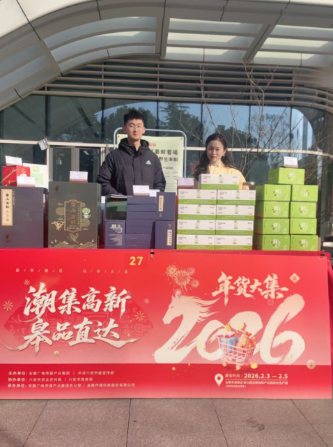 活動以“潮集高新·皋品直達”為主題,聚焦消費幫扶與文化惠民,打造了一場可逛、可品、可感的“家門口”年貨盛宴?,F(xiàn)場氣氛喜慶熱烈,來自六安大別山區(qū)的臘味、茶油、有機大米等農(nóng)產(chǎn)品,與融入非遺元素的年俗文創(chuàng)產(chǎn)品共同構(gòu)成四大主題展區(qū)。不少攤位前排起試吃長隊,現(xiàn)場蒸制的臘味、即泡的六安瓜片和霍山米斛鮮粉即沖香氣四溢,吸引眾多高新區(qū)職工與市民駐足品鑒選購。